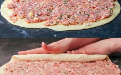 Teig eingerollt mit Hackfleisch in 10 Minuten im Ofen