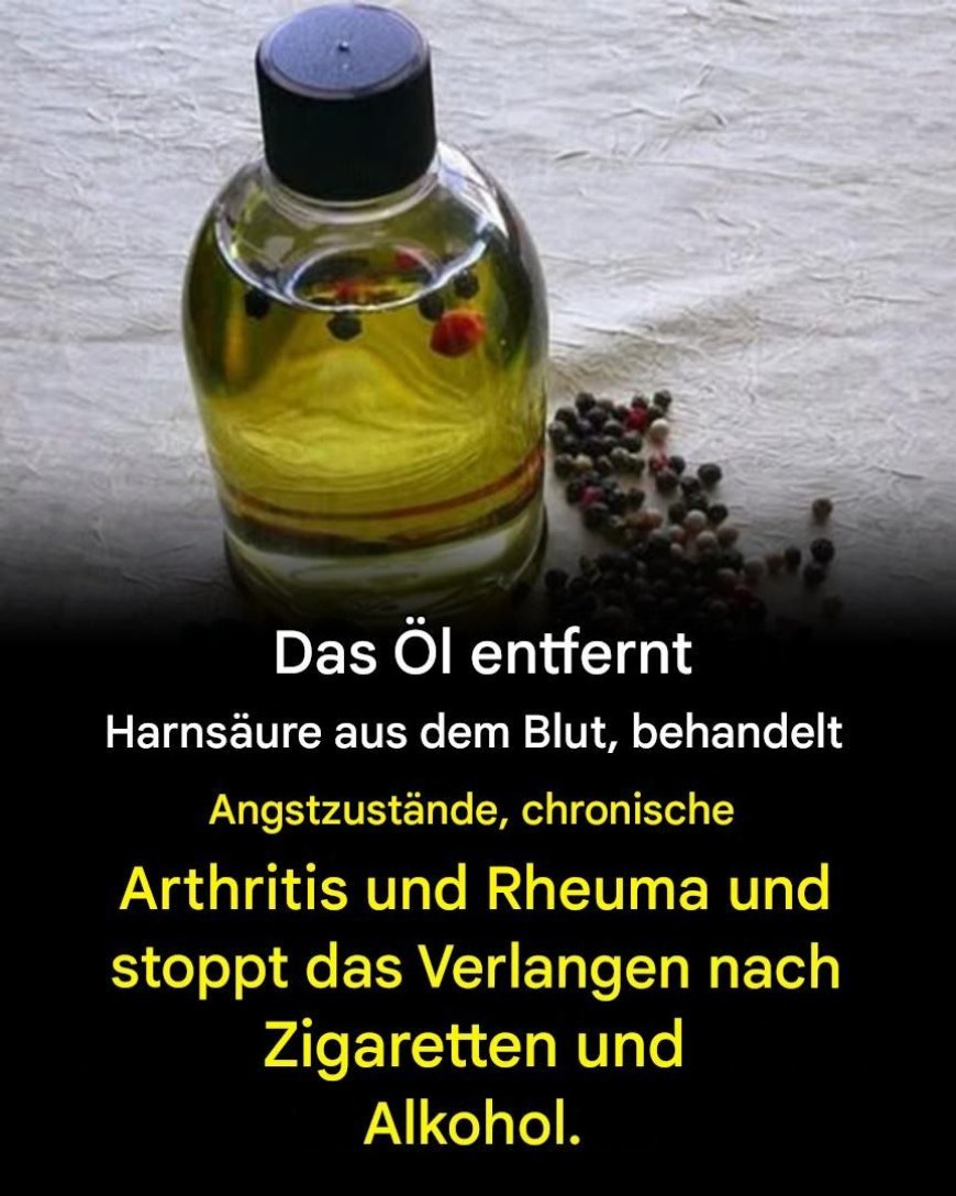 Das Öl, das Harnsäure aus dem Blut entfernt, Angstzustände, chronische Arthritis und Rheuma behandelt und das Verlangen nach Zigaretten und Alkohol stoppt