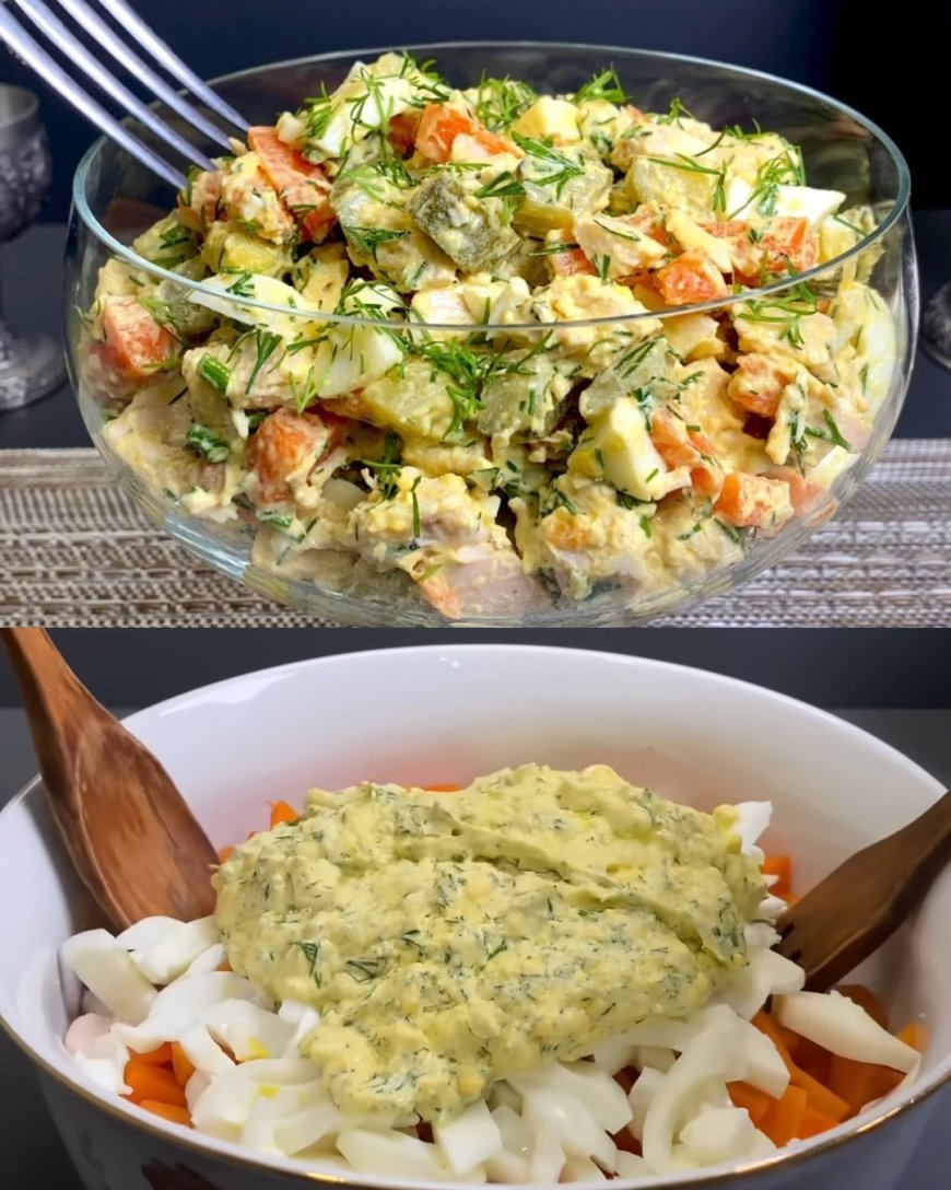 Dieser Salat ist ein wahres Geschmackserlebnis und zeigt, wie köstlich einfache Zutaten miteinander harmonieren können. Er stammt aus einer Zeit, in der weniger oft mehr war – und genau das macht ihn so besonders. Mit Hähnchenfilet, Karotten, Eiern und eingelegten Gurken entsteht eine wunderbare Kombination, die durch ein cremiges Dressing aus Crème fraîche, Olivenöl und Senf perfekt abgerundet wird.