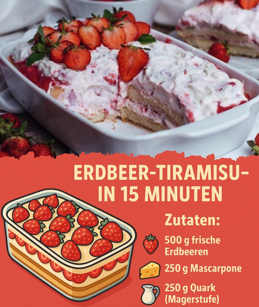 Dieses Dessert ist nicht nur schnell zubereitet, sondern sieht auch wunderschön aus und lässt sich ideal vorbereiten – perfekt also für Gäste, Familienfeste oder einfach, um sich selbst an einem warmen Tag zu verwöhnen. Jede Schicht bringt den Sommer auf den Löffel: frische Erdbeeren, samtige Creme und weich getränkte Löffelbiskuits. Ein echter Klassiker in fruchtigem Gewand!