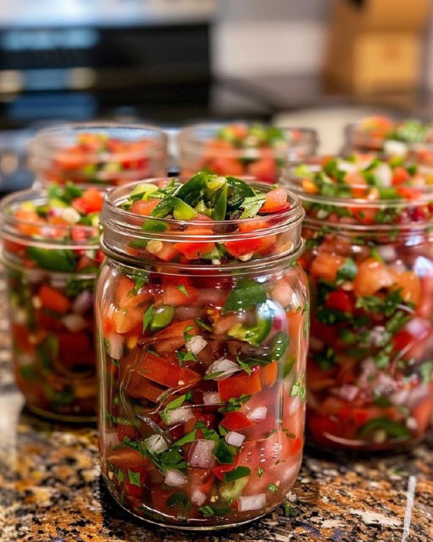 Pico de Gallo – eine frische, lebendige Salsa aus unseren südlichen Nachbarn in Mexiko – ist die perfekte Ergänzung für jedes Familientreffen oder jeden Taco-Dienstag. Diese einfache Mischung aus reifen Tomaten, Zwiebeln, Jalapeños, Koriander und Limette ist ebenso erfrischend wie vielseitig. Die Zubereitung in einem großen Glas verleiht Ihrem Tisch nicht nur einen Hauch von rustikalem Charme, sondern bietet auch eine einfache Möglichkeit, den Pico de Gallo aufzubewahren und frisch zu halten. Ganz gleich, ob Sie Ihr gegrilltes Fleisch aufpeppen oder einfach nur Ihre Chips verbessern möchten, Pico de Gallo bringt alle zusammen und sorgt für einen frischen Bissen Geschmack!