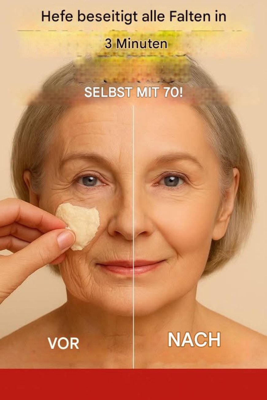 Hefe beseitigt alle Falten in 3 Minuten. Sogar mit 70 Jahren. Beseitigt Falten.