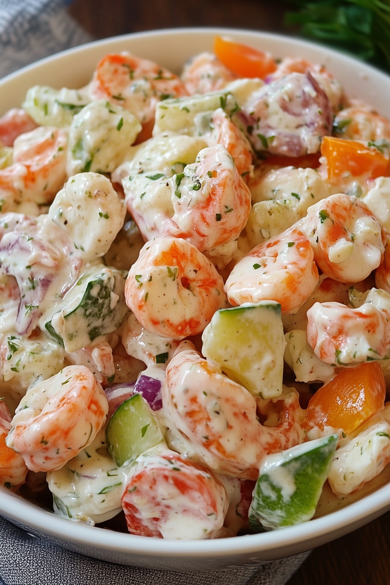 Dieser leichte und cremige Meeresfrüchtesalat ist perfekt zum Vorbereiten – ideal für ein erfrischendes Mittagessen, als Sandwichfüllung oder als elegante Vorspeise. Durch die Kühlzeit können sich die Aromen wunderbar vermischen und den besten Geschmack erzielen.