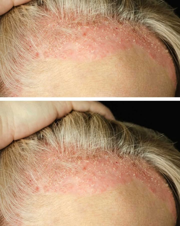Kopfhautpsoriasis ist eine häufige Erkrankung, die schuppige, juckende Stellen auf der Haut, insbesondere in der Nähe des Haaransatzes, verursachen kann. Zu den Symptomen gehören rote Hautstellen mit dicken, silbernen Schuppen, trockener Kopfhaut, Juckreiz und Schmerzen. In manchen Fällen kann sich die Schuppenflechte über den Haaransatz hinaus ausbreiten und Stirn, Hals und Ohren betreffen. Das zukünftige Erkennen dieser Symptome kann helfen, die Erkrankung effektiver zu behandeln.