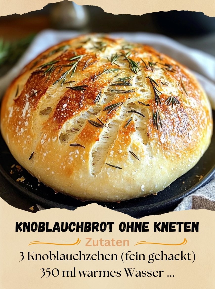 Du hast Lust auf frisch gebackenes Brot, aber keine Geduld für komplizierte Teigführung oder endloses Kneten? Dann ist dieses Knoblauchbrot wie für dich gemacht. Ohne Küchenmaschine, ohne Muskelkraft – nur ein paar einfache Zutaten, eine Schüssel und ein Löffel. Der Rest erledigt sich fast von selbst. Dieses Rezept ist der beste Beweis dafür, dass richtig gutes Brot nicht aufwendig sein muss. Saftig, locker und mit herrlichem Knoblauchduft kommt es direkt aus dem Ofen auf den Tisch – und das ganz ohne große Backerfahrung. Besonders genial: Der Teig wird einfach angerührt, darf in Ruhe gehen und wandert dann ohne weiteres Zutun in den Ofen.
