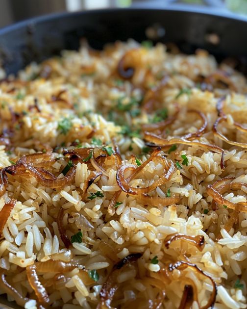 Butterreis mit goldenen Zwiebeln