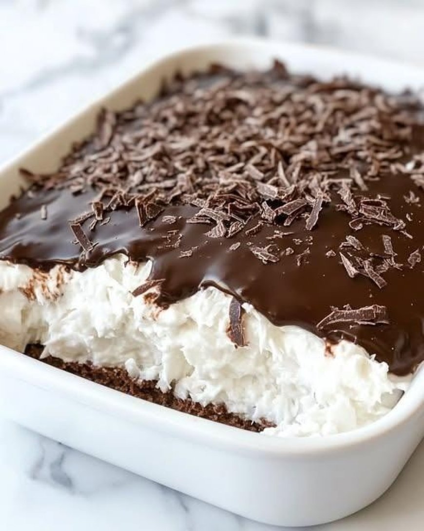 Ein herrlich cremiger und schokoladiger Kuchen mit exotischer Kokosnote – ganz ohne Backen! Perfekt für heiße Tage oder wenn du Lust auf eine schnelle, aber luxuriöse Leckerei hast.