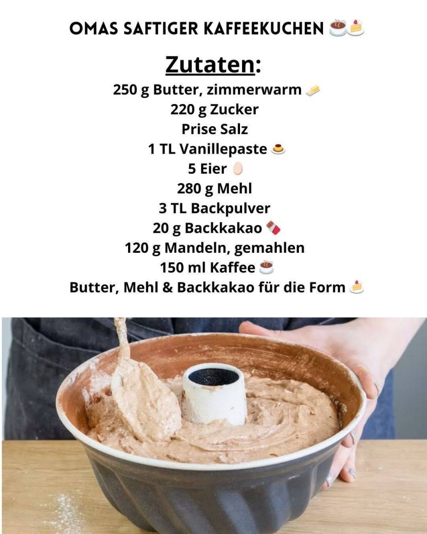 Kaum ein Duft weckt so viele Erinnerungen wie der von frisch gebackenem Kuchen, der sich langsam durch das ganze Haus verbreitet. Besonders wenn es sich dabei um Omas saftigen Kaffeekuchen handelt – ein echter Klassiker, der Generationen verbindet. Dieser Kuchen steht für Gemütlichkeit, Wärme und die kleinen süßen Momente des Lebens. Mit seiner feinen Kombination aus kräftigem Kaffee, gemahlenen Mandeln und einem Hauch Schokolade ist er nicht nur perfekt für die Kaffeetafel, sondern auch eine wunderbare Begleitung für besondere Anlässe oder entspannte Nachmittage.