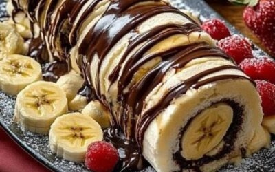 Diese köstliche Biskuitrolle kombiniert zarte Schokolade, luftige Sahne und frische Bananen zu einem unwiderstehlichen Dessert. Perfekt für besondere Anlässe oder…