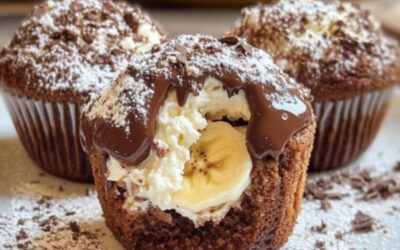 Die perfekte Mischung aus fluffigem Schokoteig, Banane, Sahnecreme und Schokoraspeln. Diese Muffins sind ein Hingucker – und schmecken genauso himmlisch…