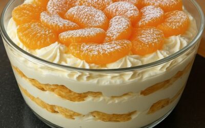 Dieses Dessert ist ein echter Blickfang auf jedem Tisch: eine himmlisch leichte Kombination aus lockerer Creme, saftigen Mandarinen und weichen…