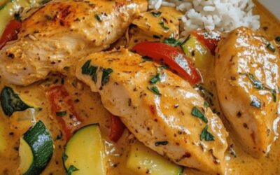 Wenn ein Gericht gleichzeitig frisch, cremig und sättigend sein soll, dann ist dieses Paprika-Zucchini-Sahne-Hähnchen die perfekte Wahl. Zarte Hähnchenbrust trifft…