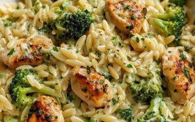 Cremige Hähnchen-Orzo-Pfanne mit Brokkoli