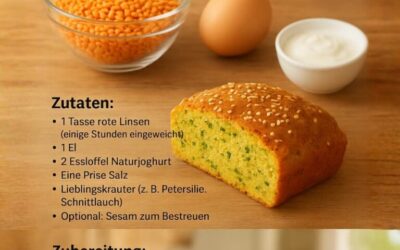 Zutaten: 1 Tasse rote Linsen (einige Stunden eingeweicht) 1 Ei 2 Esslöffel Naturjoghurt 1 Prise Salz Lieblingskräuter (z. B. Petersilie,…