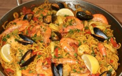 Einfache Meeresfrüchte-Paella Zutaten Für 6 Personen: 4 Kisten Olivenöl 1 Zwiebel 1 rote Paprika 1 grüne Paprika 1 Lachssteak (oder…