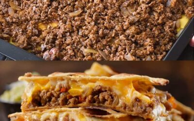 Blech-Cheeseburger-Quesadilla Zutaten 1 Esslöffel Pflanzenöl 1 Zwiebel 3 Knoblauchzehen 2 Pfund Rinderhackfleisch 1 Esslöffel Salz 1 Esslöffel Pfeffer 1 Tasse…