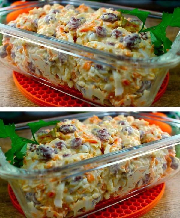 Mit Salz und Pfeffer würzen. Den Salat mit Mayonnaise garnieren!