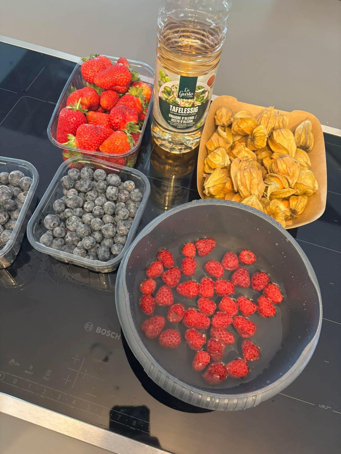 Am besten jedesmal mit Essigwasser waschen und die Früchte bleiben fast eine Woche frisch.