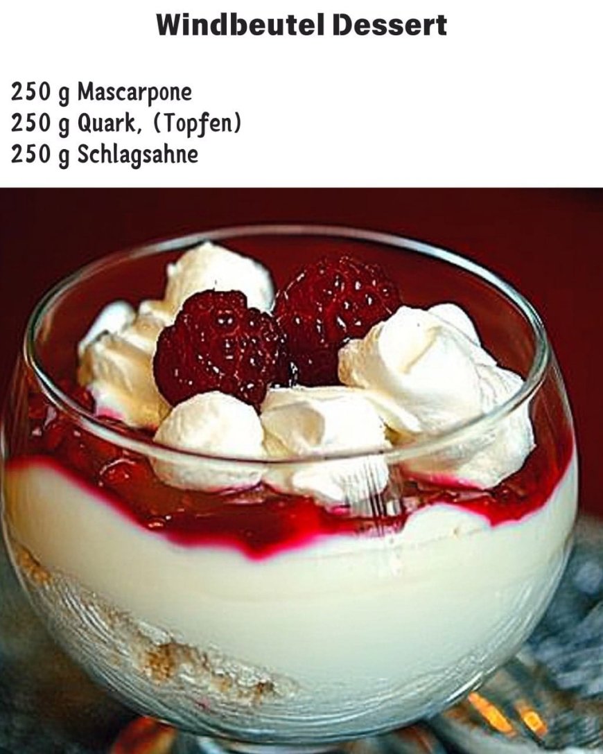 Durch die Kombination der cremigen Mascarpone-Quark-Mischung, der fruchtigen Kirschgrütze und der luftigen Windbeutel entsteht eine zarte Textur, die den Gaumen verwöhnt und die Sinne verführt. Mit seiner eleganten Anrichtung und seinem unvergesslichen Geschmack wird das Windbeutel Dessert sicherlich zu einem Highlight auf jeder Desserttabelle. Probieren Sie es aus und lassen Sie sich von diesem köstlichen, einfachen Rezept überraschen!